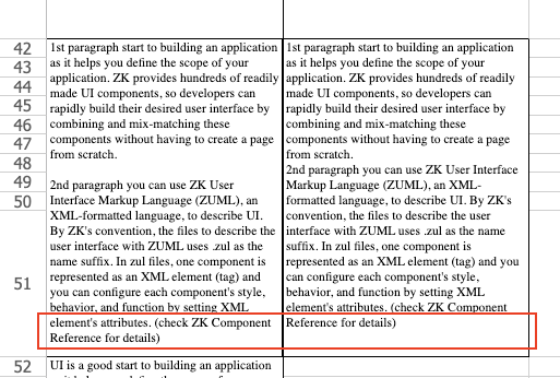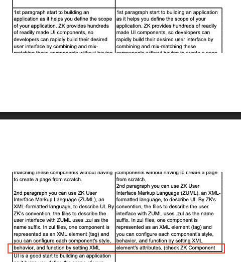 texts' layout are not the same, last line of the cell are different, pdf result seems cut some texts in the end of the cell